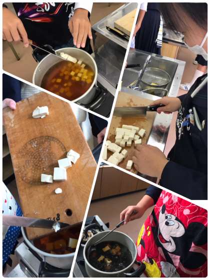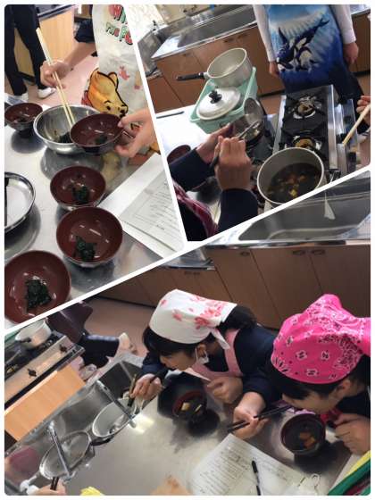 2年生の家庭科では、「ワカメと豆腐のお吸い物」を調理実習しています。