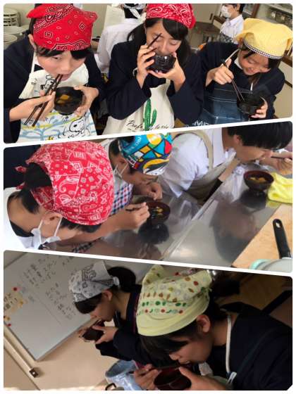 生徒たちもアツアツのお吸い物を「おいしい」と試食していました。