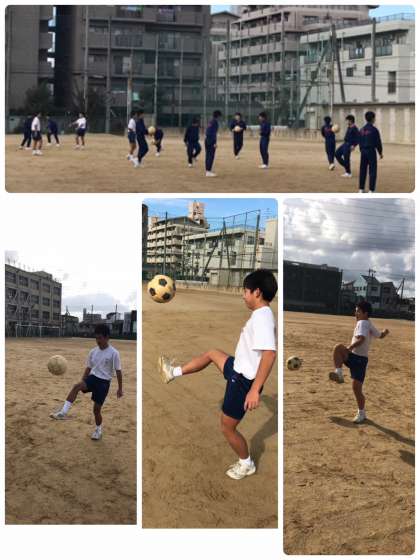 そんな中、グラウンドで半袖・ハーフパンツでリフティングをしています。