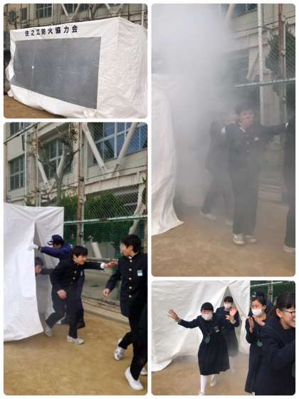 火事が発生すると煙が充満します。視界が全く失われる感覚を体験し、明るいところに出られたときは安堵の表情が見られました。