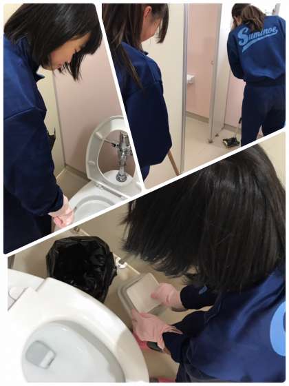 陸上部は、今日の練習の最後に、トイレと階段廊下を担当しています。