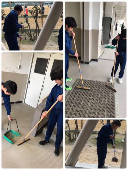 冬休みの期間中に使用したところを、部活動生徒で分担して掃除をしています。