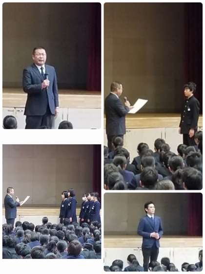 冬休み中の活動の成果として、卓球部と吹奏楽部が表彰されました。