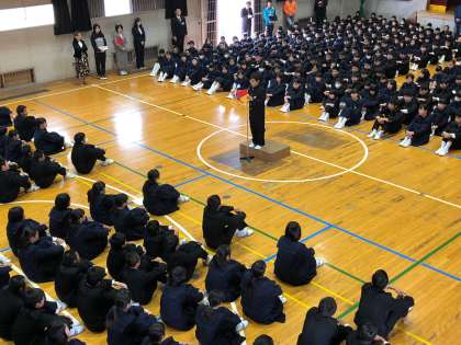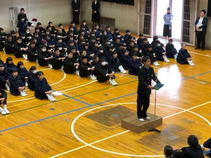 新年度初めにあたり、生徒全員で集まって対面式を行いました。