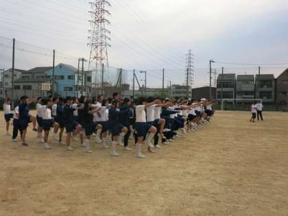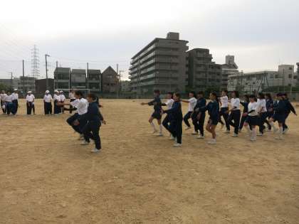 放課後、運動部で行進練習を行いました。