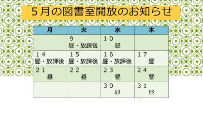 5月9日 図書室開放が増えます!