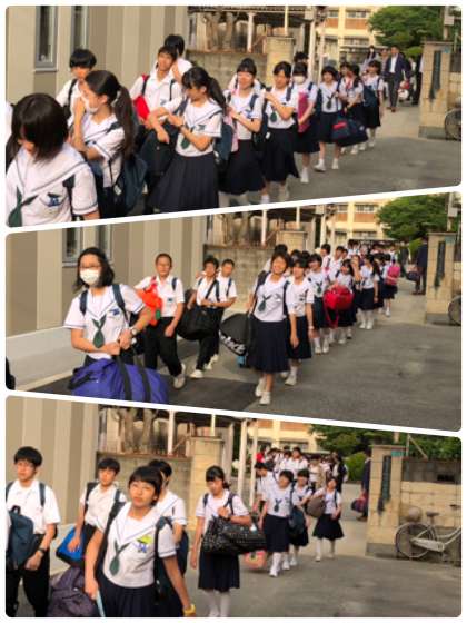 バス号車ごとに整列し、保護者の方々や先生たちに見送られながら、学校を出ました。