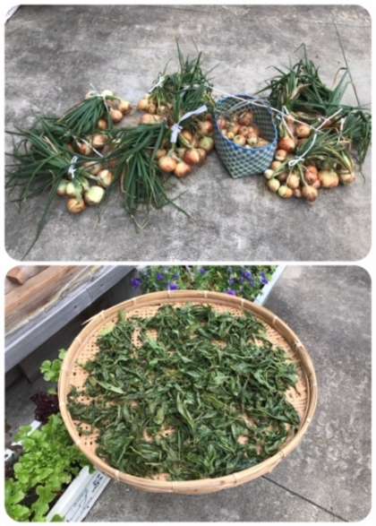 自分たちで玉ねぎを引き、お茶の葉を摘みました。