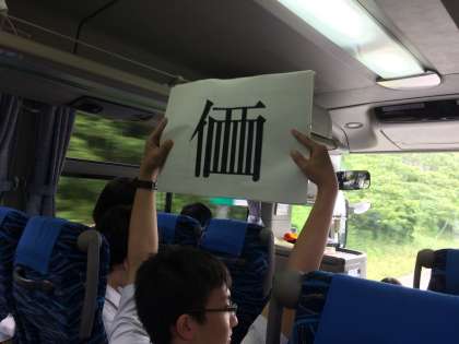 4組の車内では、バスレク係による、