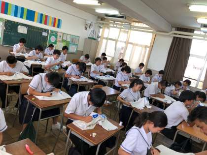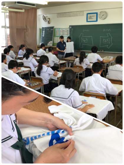 家庭科の授業では、「生活を豊かにするための布を用いた製作」として、体操服にゼッケンを縫う学習を行っています。