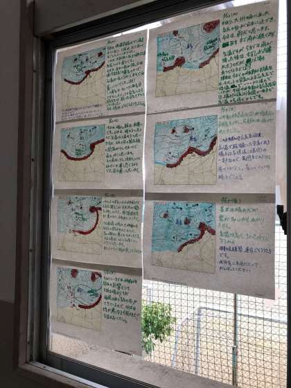 3年生の廊下には、今年度も天気図が貼り出されています。