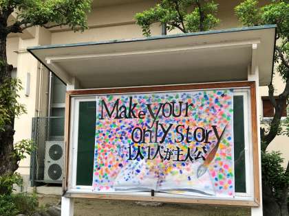 今年の体育大会のスローガン「Make your only story 〜1人1人が主人公」の旗が完成しました。