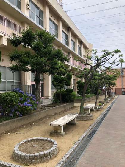 正門前の木々たちも、すっかり剪定されて、みなぎる夏を迎える準備をしています。