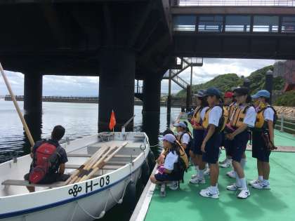 櫂の操作の説明を聞いて、カッターに乗りました。