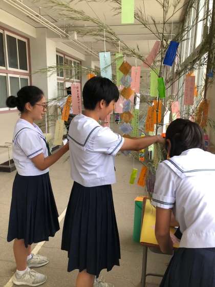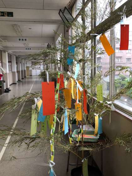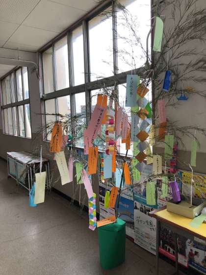 各学年に笹が飾られており、それぞれの願いが短冊に書かれています。