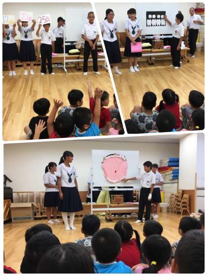 保健委員会の生徒が、やまと保育園へ「歯のみがき方」をテーマにした出前授業を行いました。