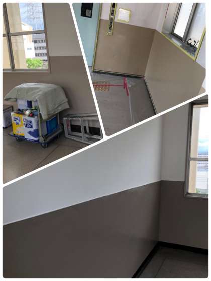 夏季休業中に管理作業員さんが、校舎整備や壁塗装を行ってくれています。
