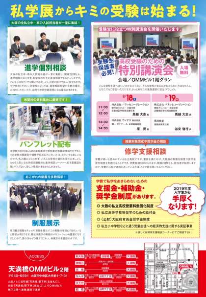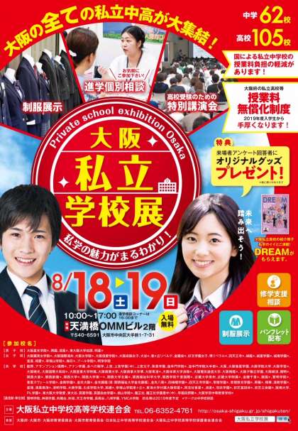 8月18日(土)と19日(日)の2日間、天満橋OMMビルにて、『大阪私立学校展』が開催されます。