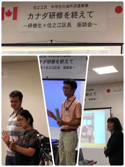 本日、カナダバンクーバー派遣に参加した生徒たちの報告会を区役所で行いました。