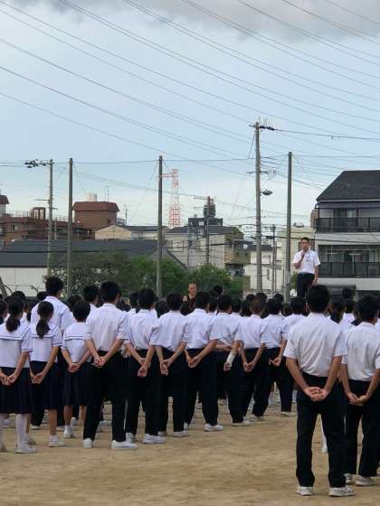 生徒指導の先生からは、生徒会会が「かばん0集会を実行させる」を目標にしていることを一人一人が意識するようにしてほしいこと、下校時にはできるだけ集団で帰るようにすることのお話がありました。