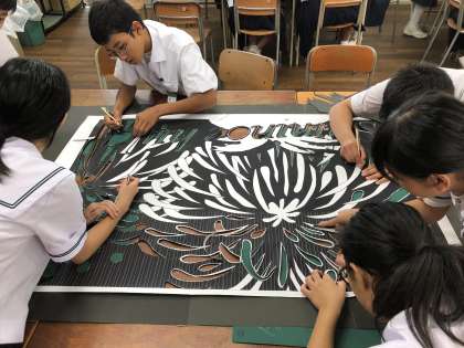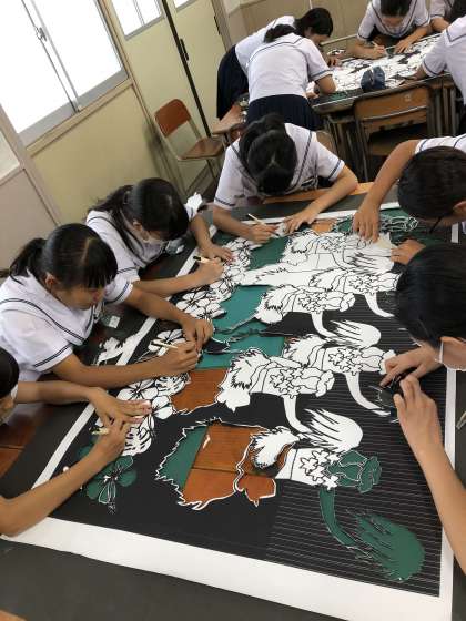 2年生の教室では、切り絵に取り組んでいます。