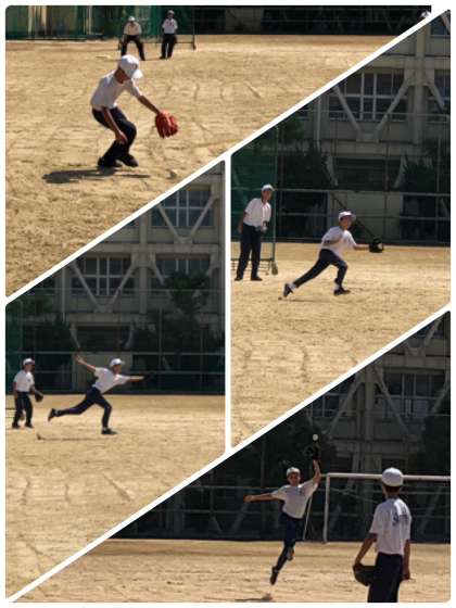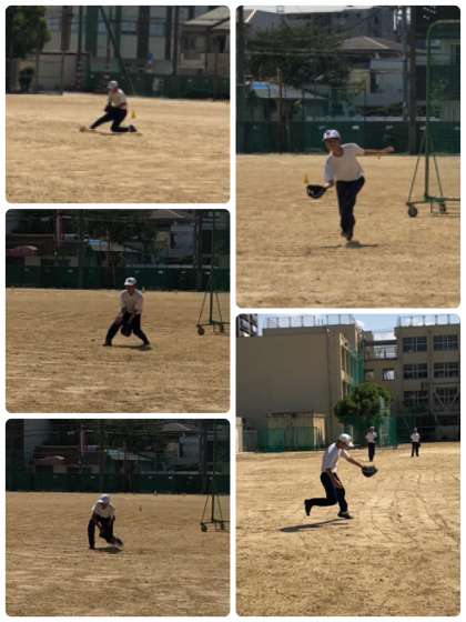 ポジション別のシートノック練習を、みんなで声を掛け合いながら励んでいます。