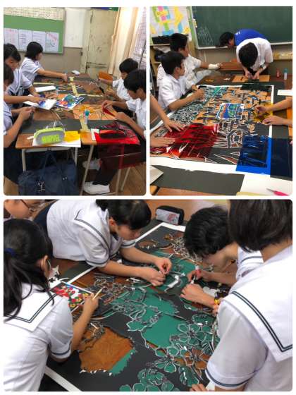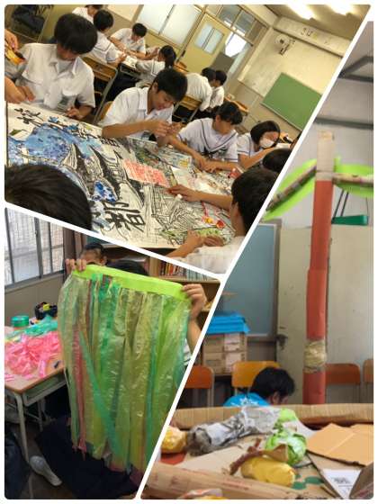 2年生も各教室で、劇の衣装係、大道具係、展示等に分かれて作業をしています。