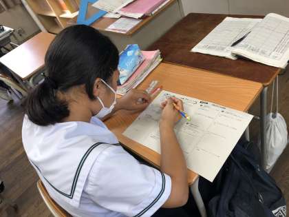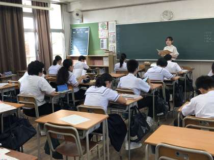 英語の授業では、先生の範読から英文を発音して学習しています。