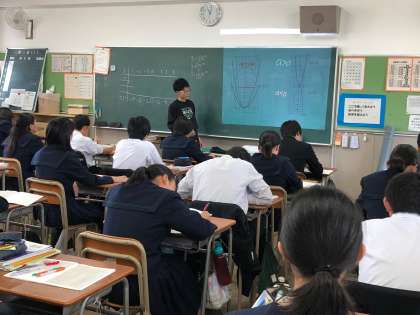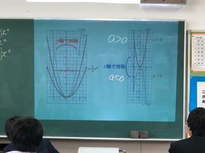 3年の数学の授業でも、グラフを投影して学習を進めています。
