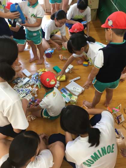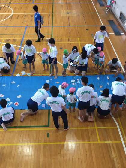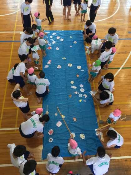 元気な園児たちの姿に、生徒たちは優しく声をかけて遊んでいます。
