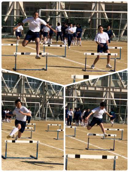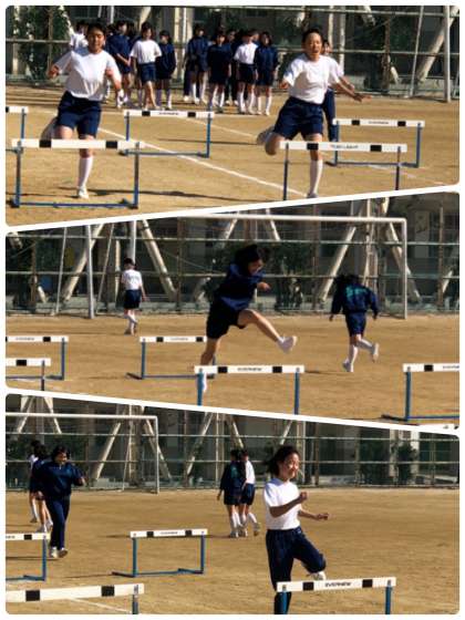 2年生の女子保健体育の授業では、ハードル走を練習しています。