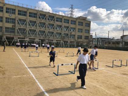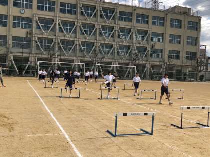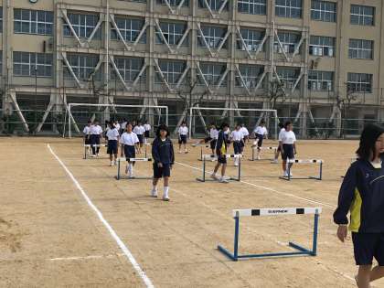 1年生の女子保健体育の授業では、ハードル走を行っています。