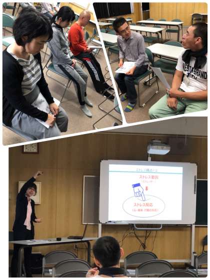 ストレス構造を知り、呼吸法やストレッチを行い、こころとからだをリフレッシュしました。