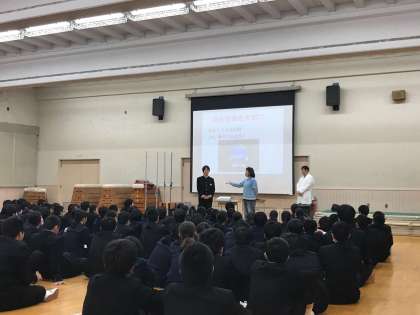 3年生は6限目に、学校薬剤師の木村先生に来ていただき、薬物乱用防止教室を行いました。