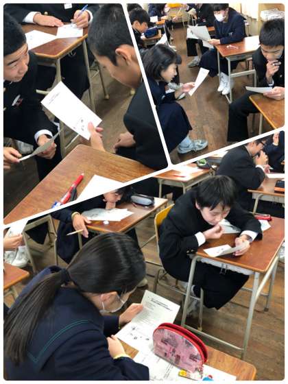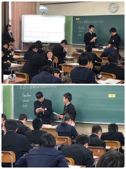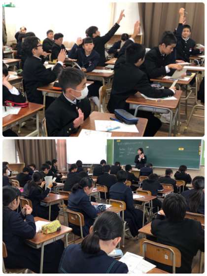 1年3組の英語、東尾先生の授業で研究授業を行いました。