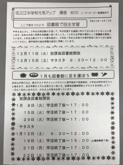 3年生は進路に向けて、1、2年生は漢字検定や英語検定に向けて、落ち着いた環境で勉強しませんか?