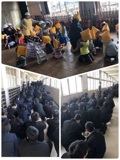 地震や津波によって起こる危険と安全な避難の仕方・身の守り方について理解し、適切な行動がとれるように訓練を行いました。