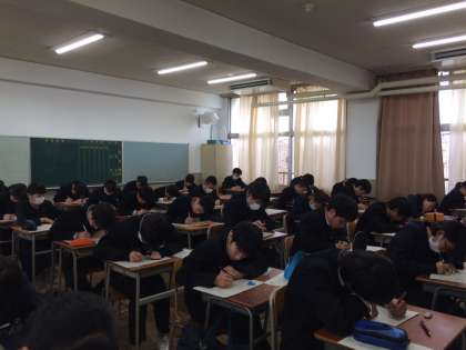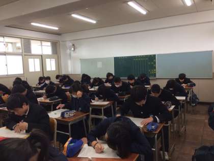 入試も近づき、自分のできることのレベルアップを目指す38名の生徒が、集中して作文講座を受けて予想問題に取り組みました。