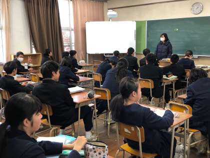 1年生の英語では、デジタル教科書や教材作成アプリや先生が作成したパワーポイント等を活用して授業を行っています。