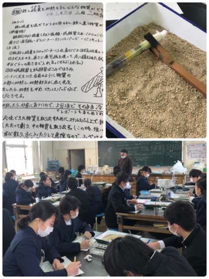 2年生の理科では、「鉄と硫黄の加熱」の実験を行いました。