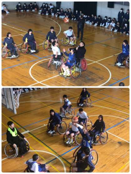 車いすラグビーや車いすバスケットの選手のみなさんのデモンストレーションを見ました。