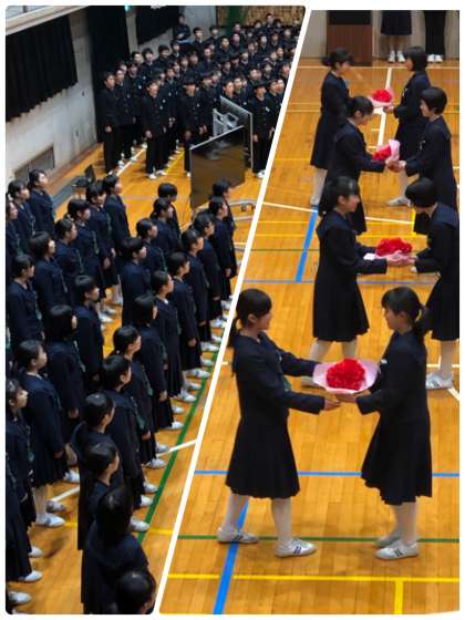 最後に2年生から花束を贈呈し、卒業生の胸に飾ります。