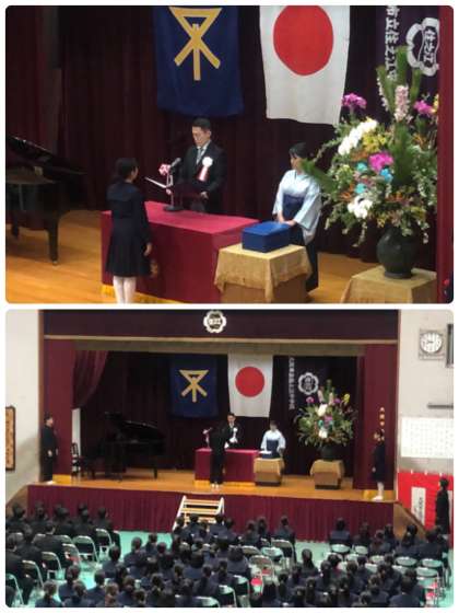 卒業証書授与では担任の先生から名前を呼ばれ、大きな声で返事をしています。