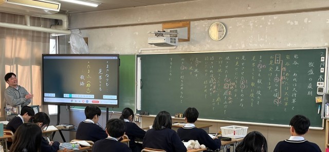 2年4組は国語。平家物語の場面や状況を捉え、人物の行動や心情について考えていました。