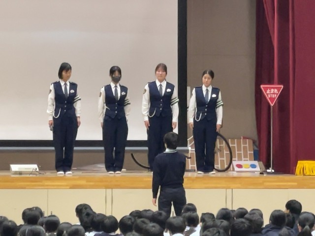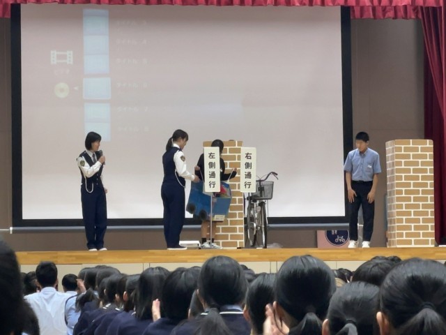4月24日(金)6限目体育館にて全校生徒へ交通安全教室を行いました。