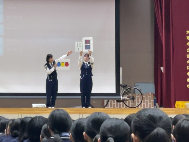 住之江警察署交通課に来校いただき、今年の4月から適用される自転車の交通反則について