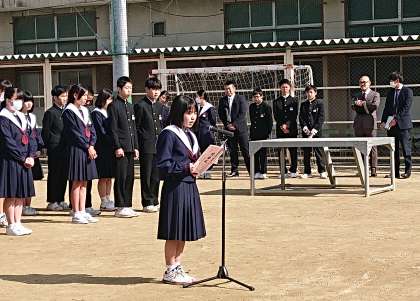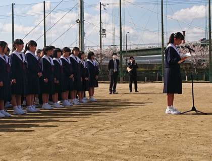 二、三年生代表の歓迎の言葉のあと、一年生代表の挨拶がありました。