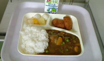本日は「入学祝い献立」です。やはりカレーライスは定番です。