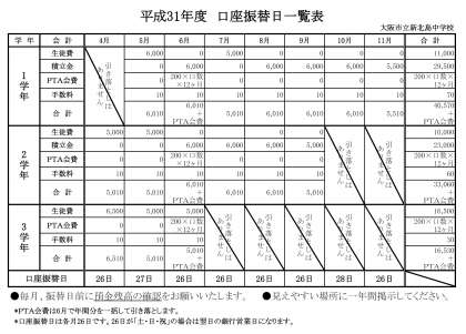 本日、お子様を通じて学校徴収金の予算書を配布しました。