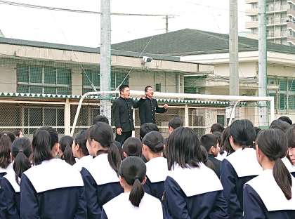 全員の「お願いします!」の大きな声で始まり、部活動キャプテン代表のあいさつがありました。